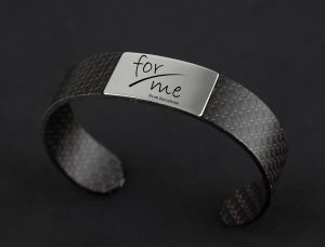 A For-Me Barcelona continuem apostant pel disseny exclusiu i els materials d’alta qualitat amb les nostres polseres personalitzades en fibra de carboni amb placa de